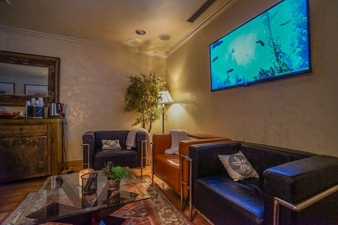 My experience at the Spa at Charleston Place began in the lounge which played the visual equivalent of luring white noise. A large hi-definition television showed a film of fish who swam to a spa soundtrack. I watched this for two minutes and almost fell asleep in my chair. At 10AM after three cups of French Roast coffee. I am playing it for my kids on our next vacation at bedtime!