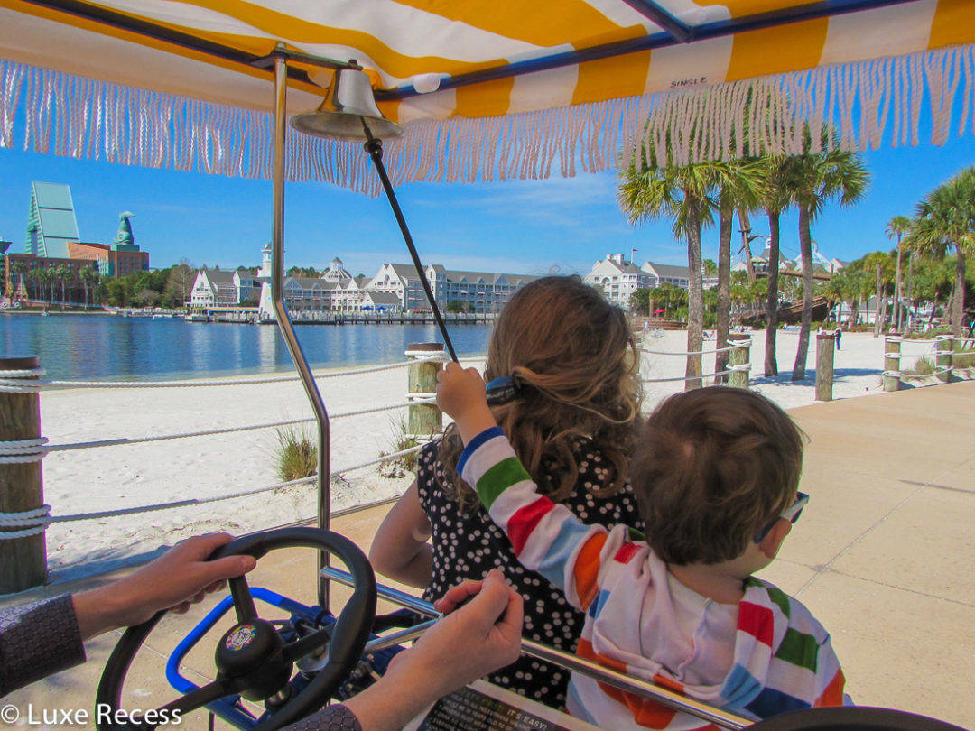 The best perk is that the Swan and Dolphin are adjacent to Disney’s Beach Club, Yacht Club, and Boardwalk, giving Swan guests numerous dining options on foot. Families can rent a surrey to pedal around the circular path connecting all the hotels, though there is one bridge that you may need to get out and push a little.