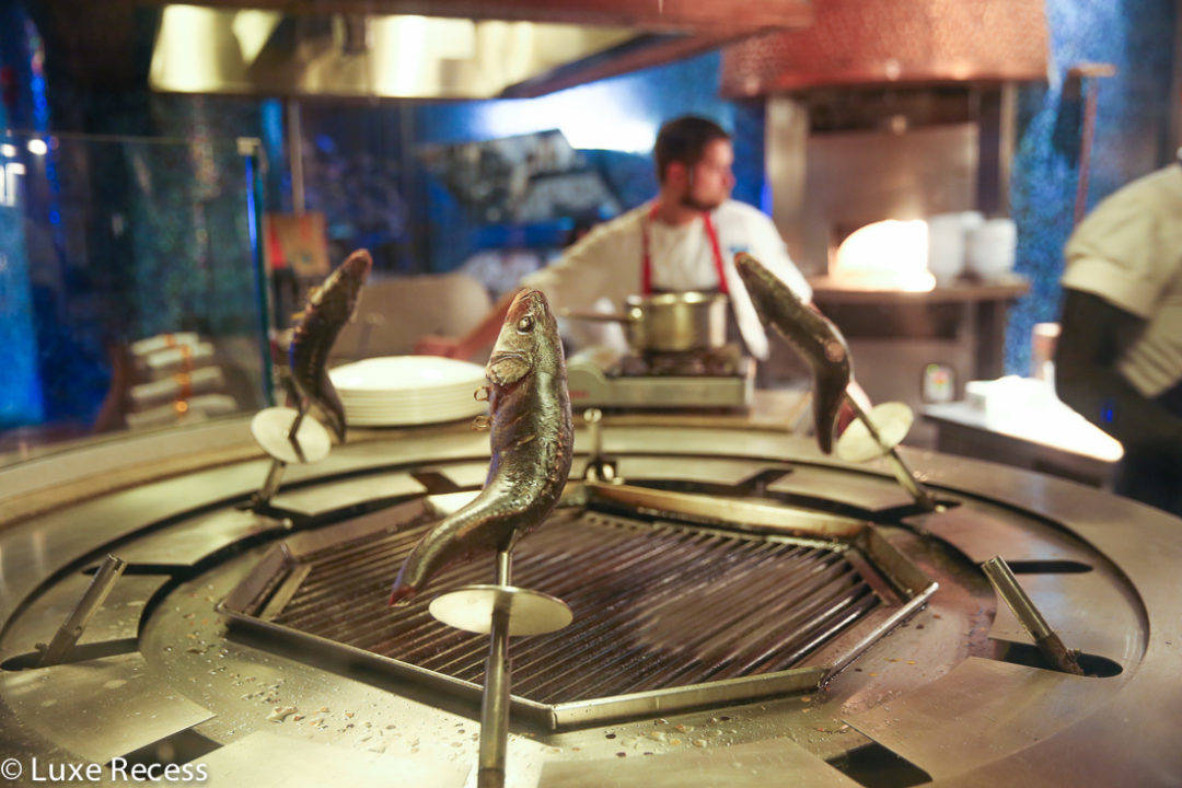 Todd English’s signature restaurant Blue Zoo focuses mainly on fish. We ordered the house specialty, dancing fish, but it wasn’t until we left that we saw fish dancing, slow roasting with pirouettes, on display.