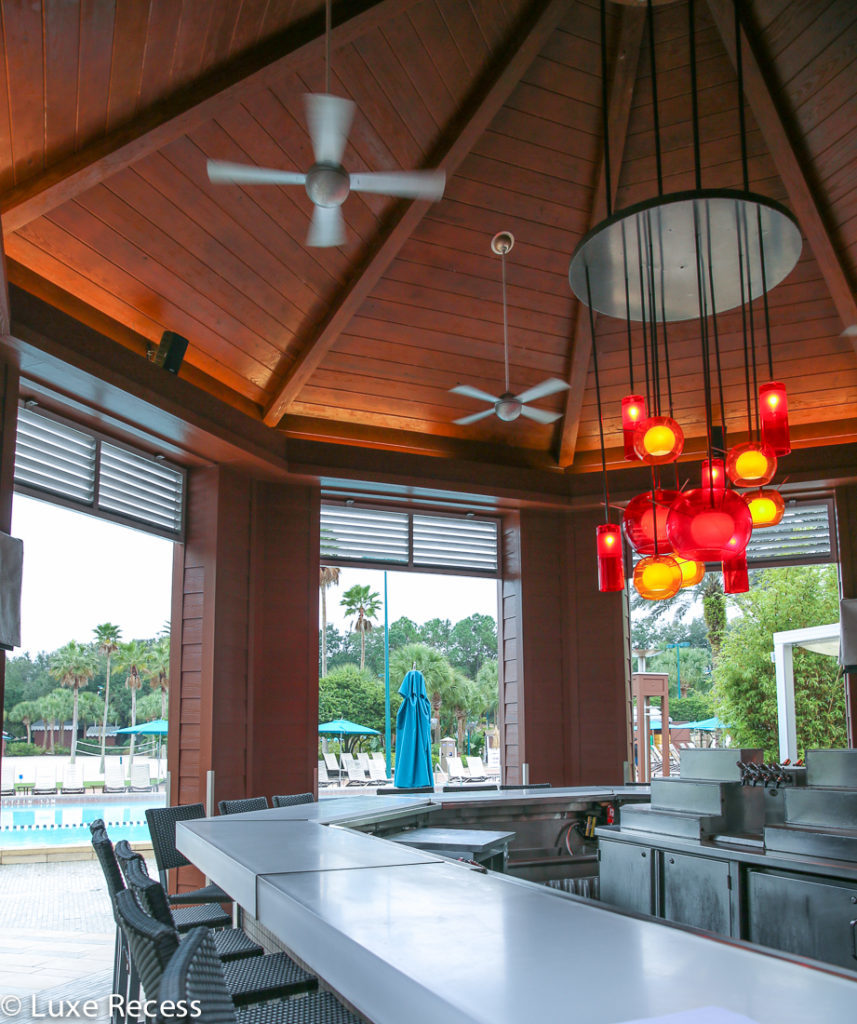 Made-to-order omelets, hot cereals with every possible nut and seed for garnish, pastries, and bagels fill out the rest of the offerings. The Swan also has a Java Bar, a coffee kiosk which also offers the same fresh juices and pastries. The Dolphin features what Disney World resorts call “quick service” restaurants. Pikabu serves casual fare cafeteria-style, and an ice cream shop always draws crowds.