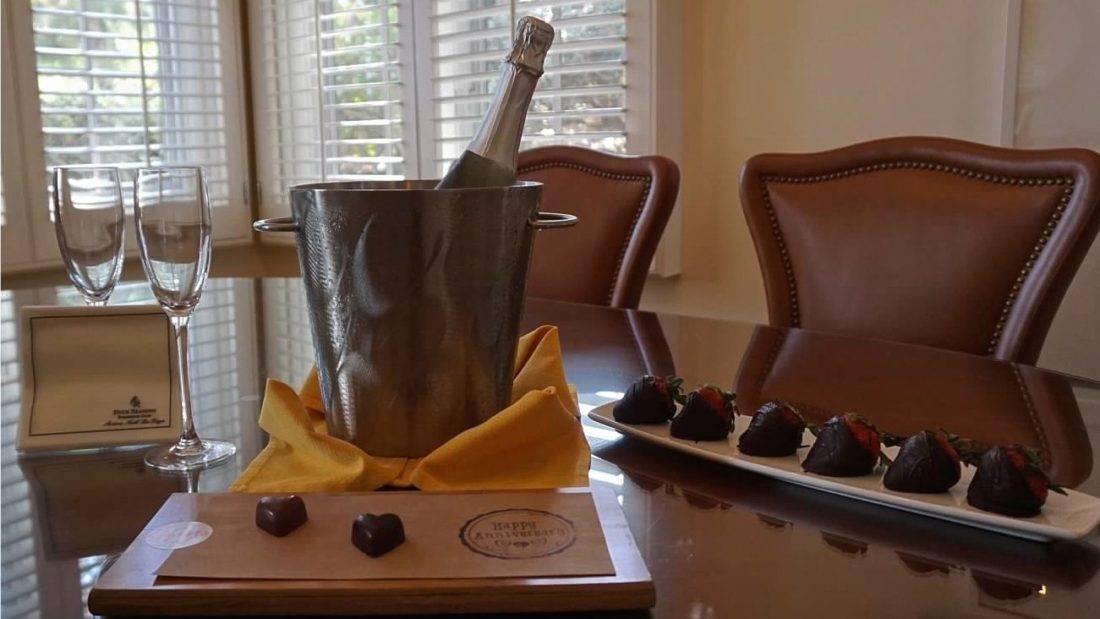 To celebrate our tenth anniversary, we hired a babysitter and set off for the Pacific Coast Grill, suggested by the concierge. We dined on the beach in Cardiff watching the sun set over the ocean. The hotel left us champagne and chocolate covered strawberries as well. It was a great day.