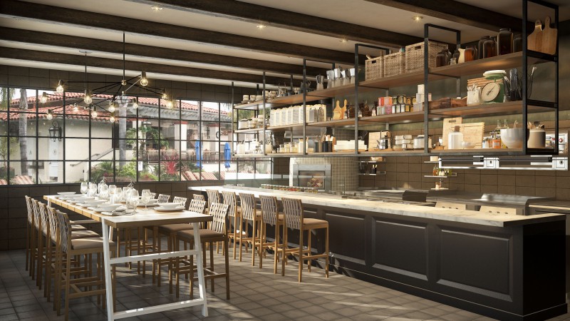 The Four Seasons Aviara is currently undergoing a substantial clubhouse renovation to provide more resort-like features this spring. On-site dining is currently limited to poolside fare at lunch and all-day room service. I asked for a tour and grabbed a white hard hat to see the new plans. A spa, exercise classes, and restaurant will make it more like a full-service resort. The Seasons Restaurant will have two sections: the more traditional dining room and the kitchen, will provide a family-style chef’s table and counter seating within a large working kitchen. The chef will interact directly with the guests, cooking on cue.