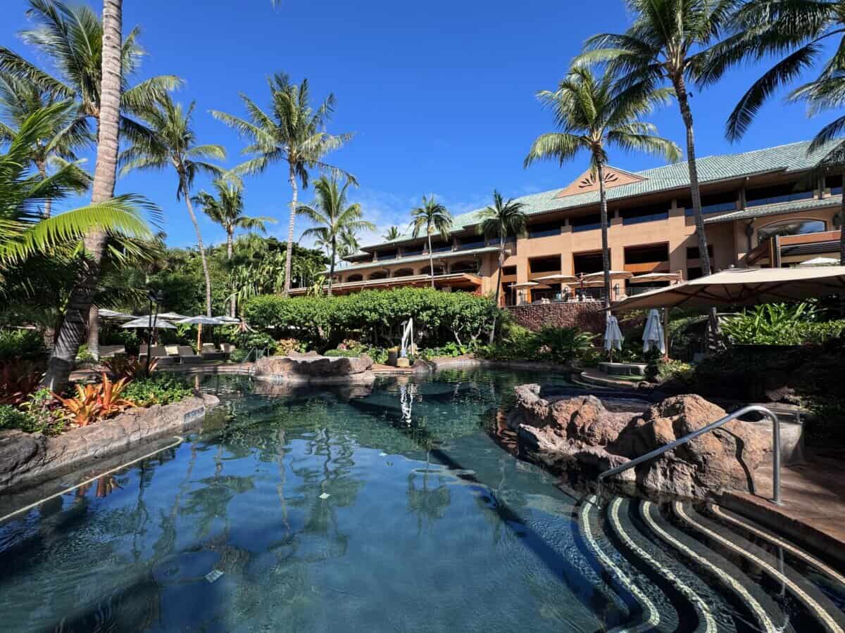The central pool cascades down multiple levels toward Hulopoe Bay, with the oceanfront section reserved for adults only. It’s beautiful rather than enormous, designed more for cooling off between beach sessions than marathon swim sessions. Private cabanas line the deck, though securing one requires advance reservations during peak periods. The pools (and resort) don’t have the see and be seen vibes you’ll find at the Four Seasons in Maui.
