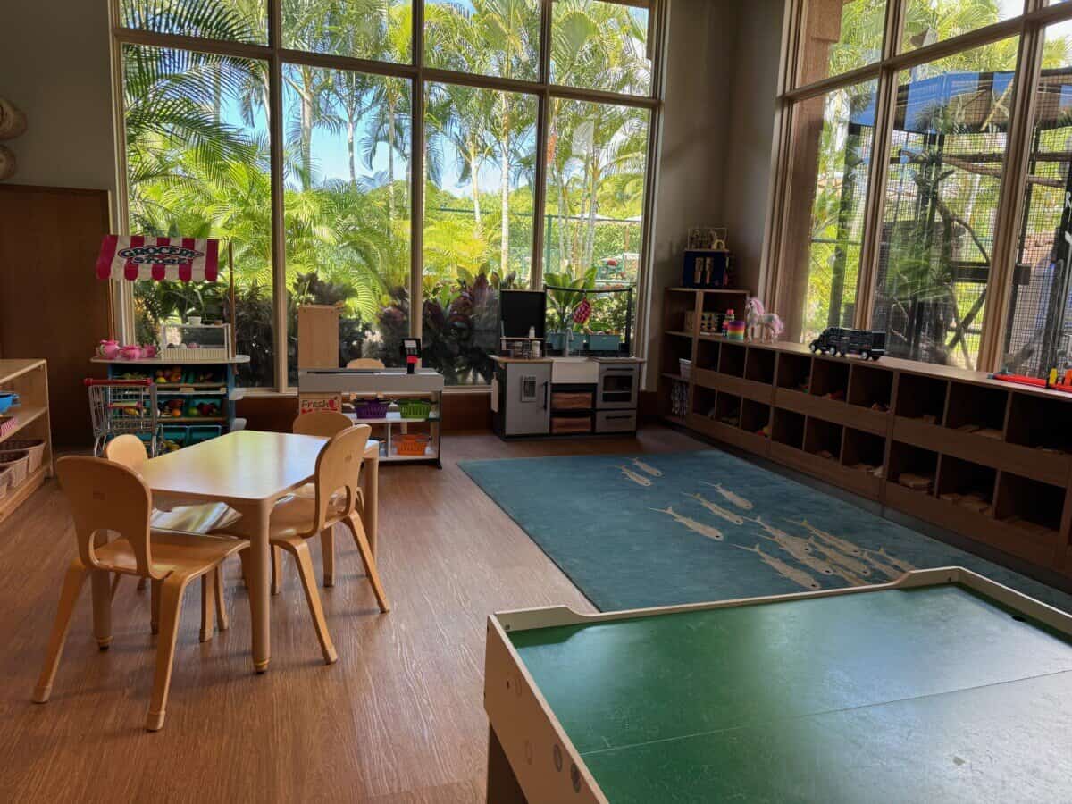 The complimentary Kids For All Seasons program operates daily from 9:00 AM to 5:00 PM for children ages 5-12, with flexible drop-in or full-day participation. Children build erupting volcanoes, learn about ancient petroglyphs, hunt for geckos, create art projects, and participate in traditional activities like lei making and coconut frond weaving.