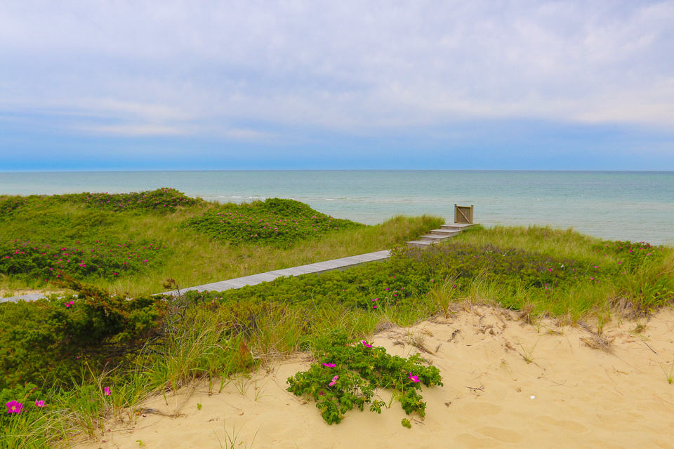 As a result, we kept it short and enjoyed riding to Cliff’s Beach whose entrance is within the residential area. We observed the extensive steps and walkways down the cliff to reach the sandy beach, and I was amused by one resident’s conspicuous gate perched at the end. We walked the vast sandy beaches of the Nantucket sound minutes before a thunderstorm rolled into sight.