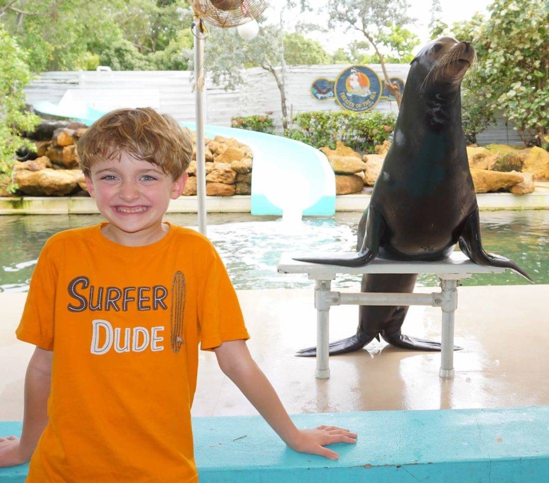 This last trip we also visited Theater of the Sea, which opened in the 1940’s. We saw a show with dolphins and a sea lion with front-row seating which put us not more than 3 feet away from the animals. What kid wouldn’t be in hysterics with a sea lion sticking out its tongue at them? After an ice cream, we donned bathing suits and swam in their Lagoon to hand-feed parrot fish. The Lagoon also houses barracuda, which we only mentioned to our son after he was out of the water.