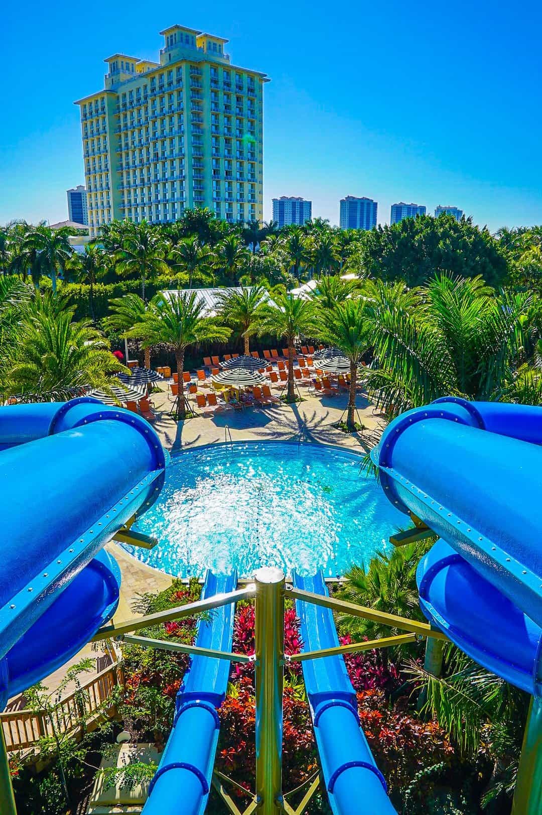 We chose the Hyatt Coconut Point, north of Naples, for its new lazy river and water slides that just opened in November of 2016. (Check your dates for rates.) It’s a hugely popular convention hotel which means that many of the hotel guests are traveling solo, and I knew we wouldn’t be overwhelmed with too many families at their facilities.
