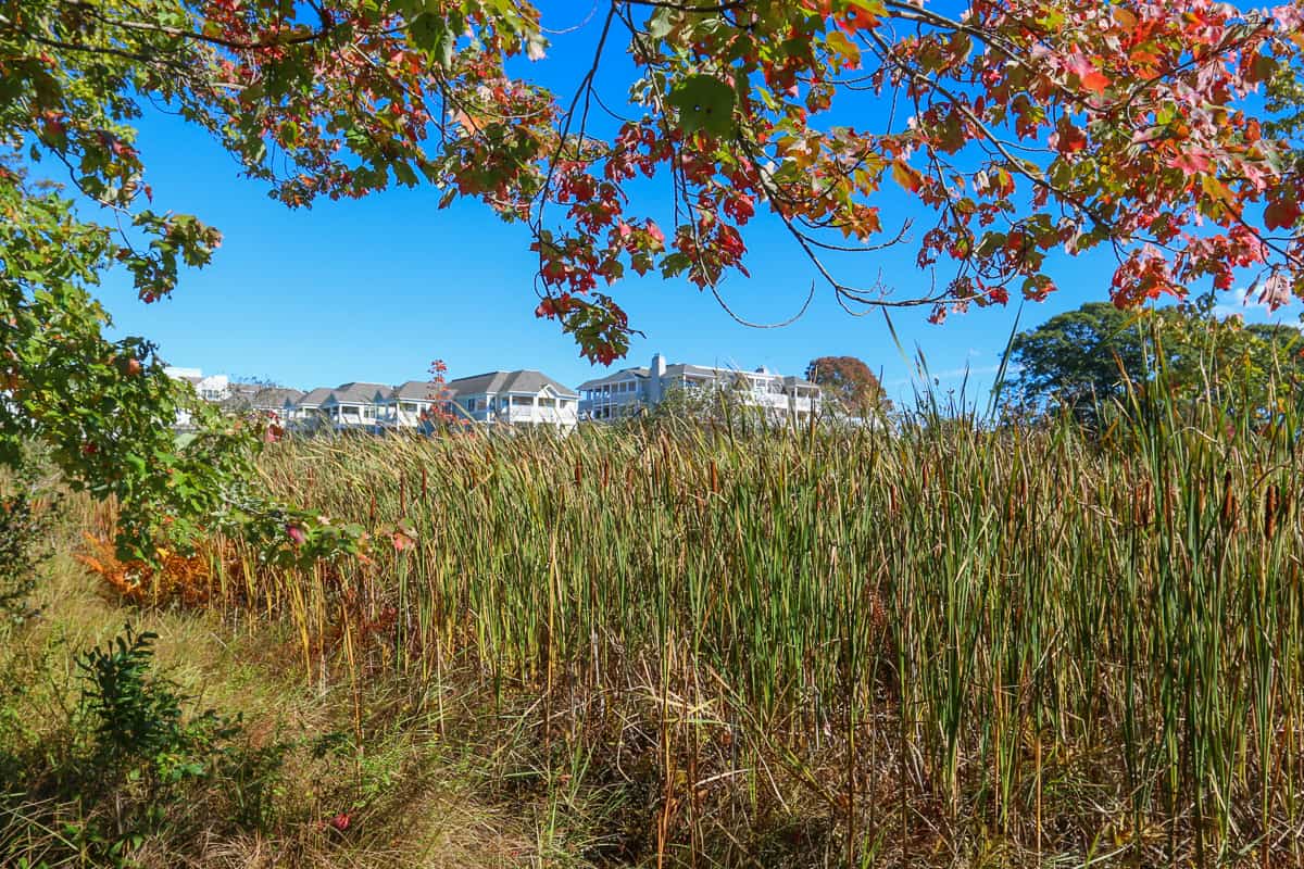 And although the water is seen in the distance, one of the magical treats of the Inn by the Sea is the path that guests take to reach the ocean. What starts as a boardwalk along a wetlands area becomes a dirt path through a vernal, topiary-like forest.