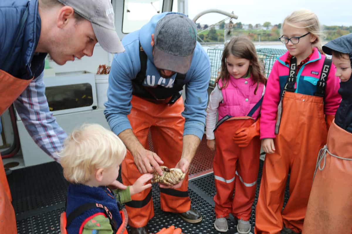 But we ended up loving every second of the boat ride. The lobster fisherman had a great passion for explaining everything… from sites in Portland’s harbor, the area’s marine life, how to bait a lobster trap, and how to trap lobster sustainably. The two-year-old to the fifty-year-old were engrossed as we learned to measure the lobsters and place bands on their claws.