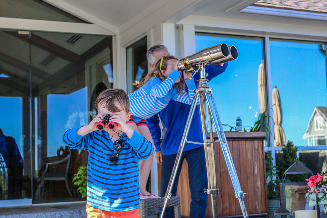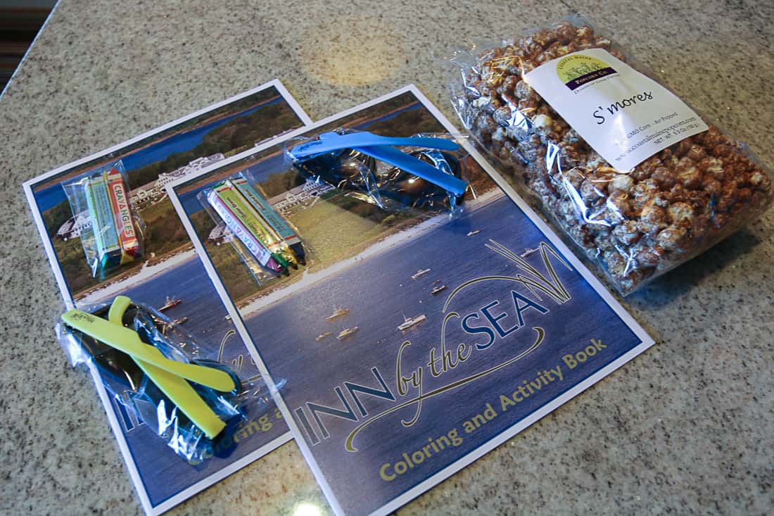 The resort provides children their own birding binoculars, balls, Frisbees, and other games as part of their beach service of chairs and umbrellas. Attendants will carry gear for you, if requested. There are welcome kits for children that feature sand toys, coloring books, sunglasses, and local treats. We even tried blueberry beer. When in Maine….