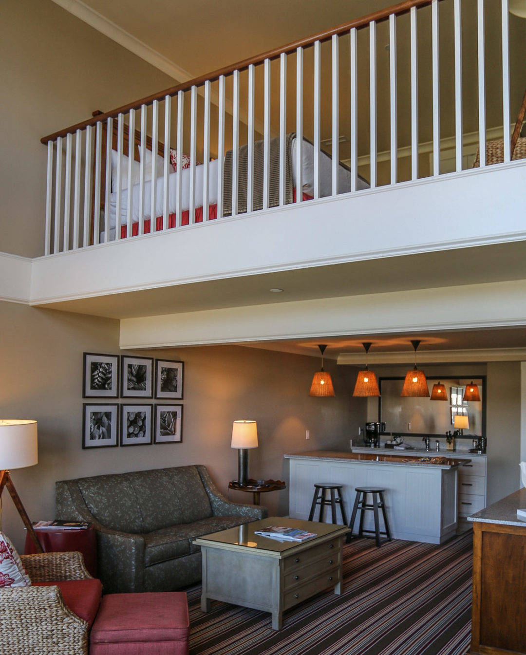 Our Cove Suite was fabulous. It contained a large bedroom with one of the best beds my husband and I have ever slept on. Given how many nights we sleep in hotels, this is saying something (it was a Simmons Beautyrest Recharge). Seperated by a large bathroom, the second bedroom in this class of beach suites offers two queen beds. The living, dining, and kitchen areas were charming, with stocked shelves of games and stylish design accessories. There was a wonderful gas fireplace and a furnished deck, too.