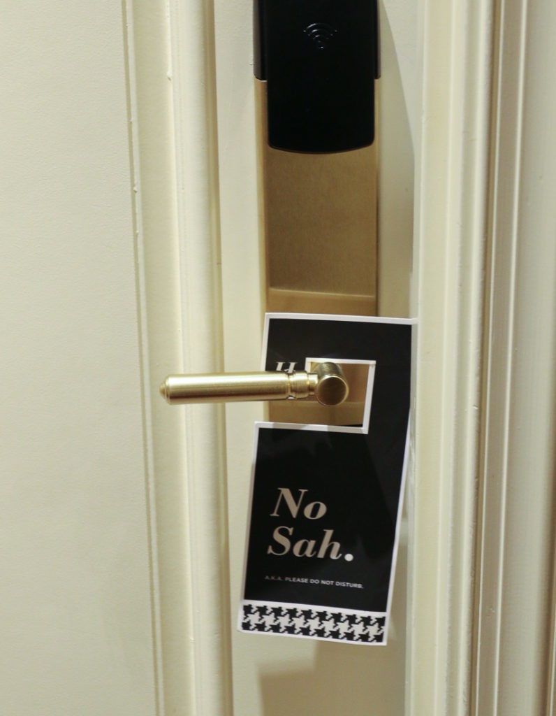 Our room, not the Fenway Suite, worked great for families, with floor-to-ceiling houndstooth curtains that created two separate areas to sleep in. The curtains to the outside windows were cleverly striped in baseball ticking. Most hotel information is loaded on the room’s iPad.