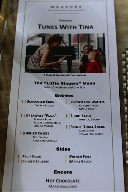 We started our stay with the Sunday family brunch, a musical event called Tunes with Tina. Tina DeVaron is a master at engaging kids, talking to them by name from the piano bench as she composes and personalizes songs in a casual cabaret-brunch. Santa Claus was Tina’s special guest (instead of a rotating Broadway star) as it was a holiday-themed brunch. My favorite moment was whenever Tina sang “Santa Claus is coming to town,” Santa kept responding in a thick New York accent, “I’m already hee-uh.”
