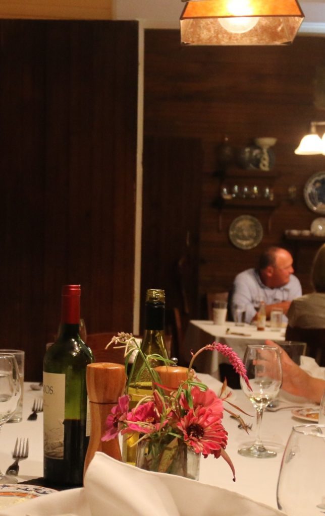 Guests gather prior to dinner to enjoy wine and appetizers like grilled squab legs. I don’t know if the bowl of goldfish crackers was specifically for the children in residence at the time or if it was an evening staple.