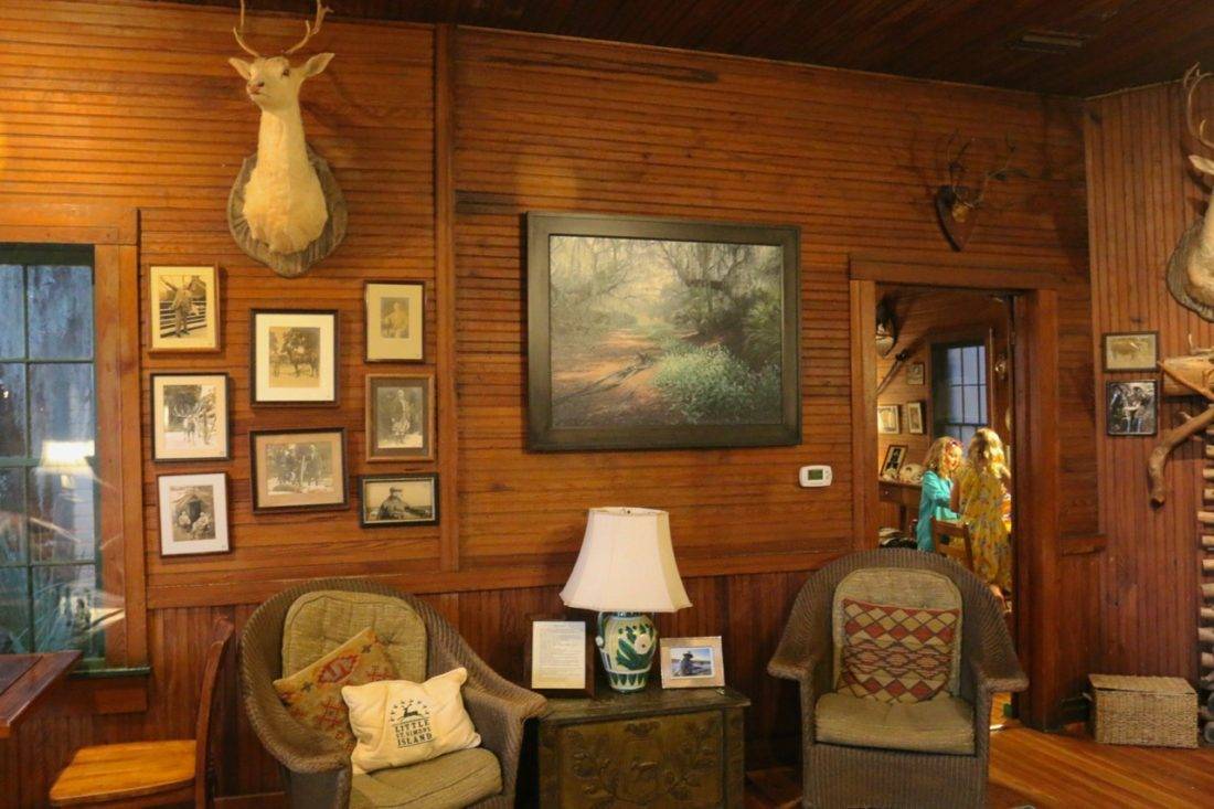 The Lodge on Little St. Simons Island offers alternatives to its eco-tours. It has a lovely saltwater pool, expansive in size, where you often get a swim to yourself. Ping pong in the adjacent, screened-in pool hut, and the bean bag tosses scattered around can’t really rival the opportunity to look for animals that roam the site freely. There are more owls in the Lodge than Hogwarts Castle. The taxidermy display rivals that of a small natural history museum.