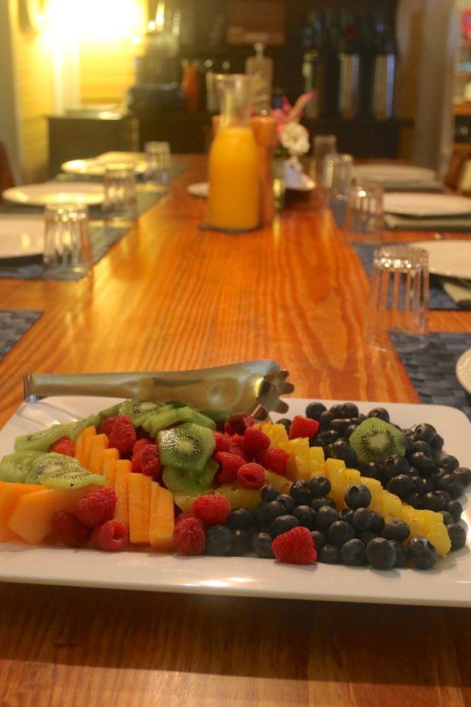 Breakfasts offered gorgeous fruit salads, omelets, French toast, breakfast meats, and dinners included crab cakes with couscous and grilled vegetables. Between meals, there is a coffee and tea display with house-made granola bars and fruit to tide guests over. The rates are inclusive of meals, snacks, wine, and beer.