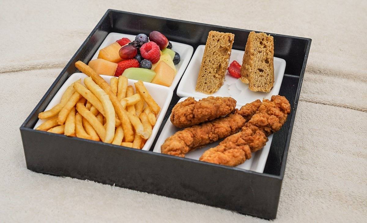The food was artfully presented, and we loved enjoying such a gastronomic meal while our children were happily eating along with us. No screens or crayons needed.