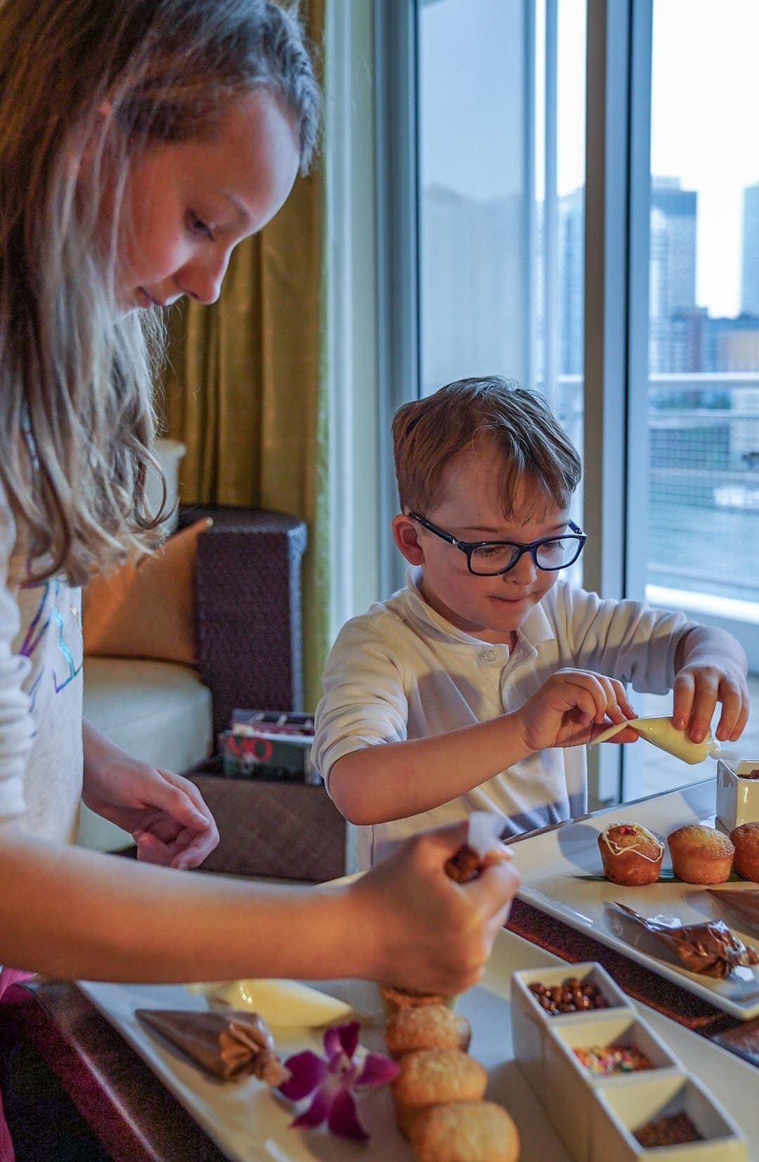 Our family vacation started off with a bang when a server from in-room dining arrived with a family welcome amenity of frost-your-own cupcakes.