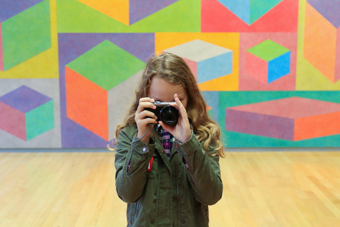 I gave my daughter a camera to inspire her to look more deeply at the Sol LeWitt works and to focus on how they lived in the space together, which really helped keep her interest.