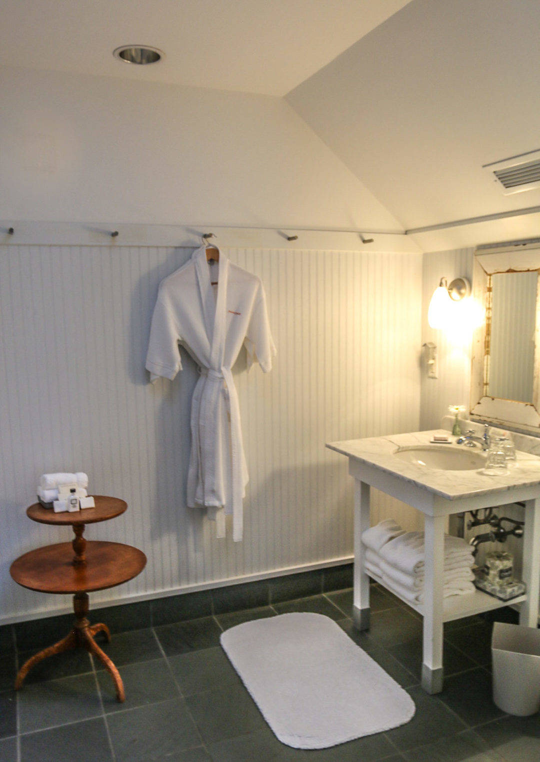 Rooms are adorned with Company C rugs and Pottery Barn-style slipcover furniture, feeling much like a chic studio apartment. Bathrooms are particularly inviting with separate showers and tubs all in gleaming white and chrome, and rooms are decked with fancy technology, Apple TVs and Tivoli stereos.