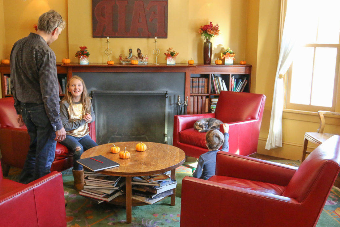 A charming parlor area offers stacks of board games. My son immediately made friends with the hotel kitty who reigned supreme in the light of the sunny windows facing Mass MoCA across the street.