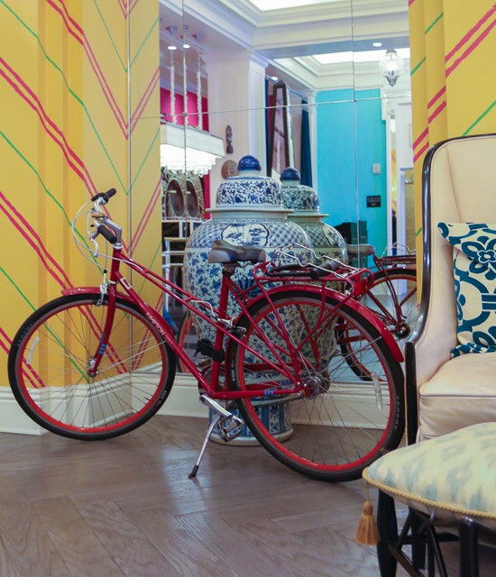 Bicycles in the lobbies next to Chinese jardinieres, illuminated tea-cup pendant lamps outside elevator lobbies, and a tall ship crystal chandelier are little touches I loved seeing.