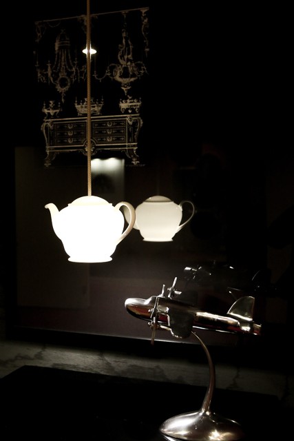 Bicycles in the lobbies next to Chinese jardinieres, illuminated tea-cup pendant lamps outside elevator lobbies, and a tall ship crystal chandelier are little touches I loved seeing.