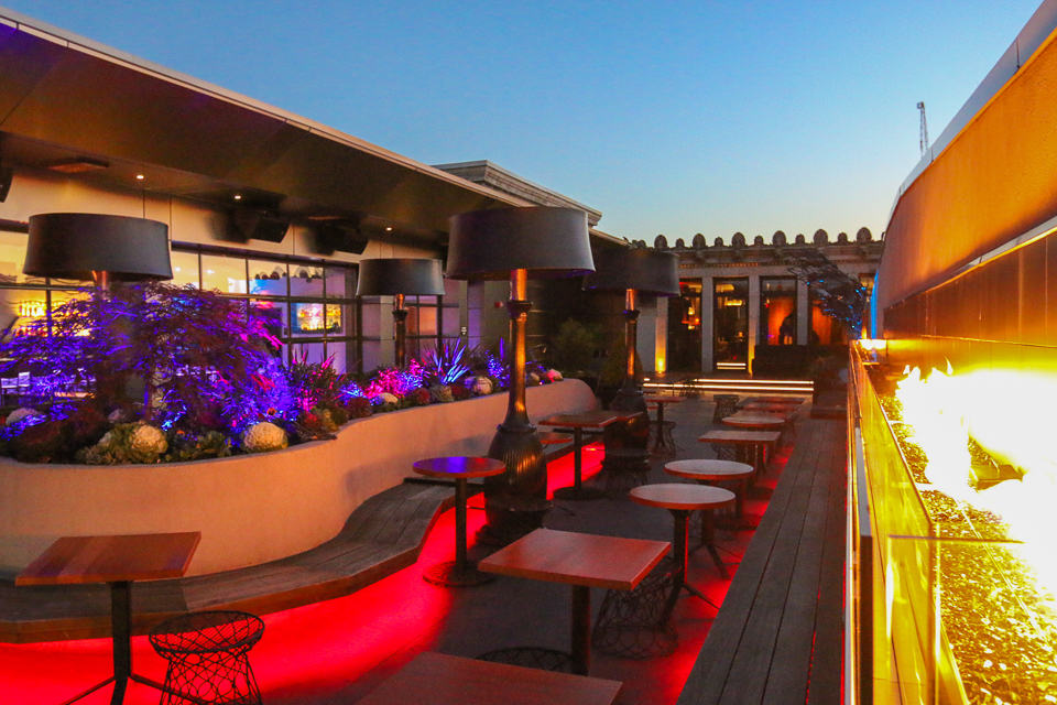 The lounge on the rooftop is 21 and over, but if you are able to break away from the kids it’s a beautiful spot with city views. The long wall of flames and very effective heat lamps will keep you toasty outside. The indoor lounge is beautiful, too.