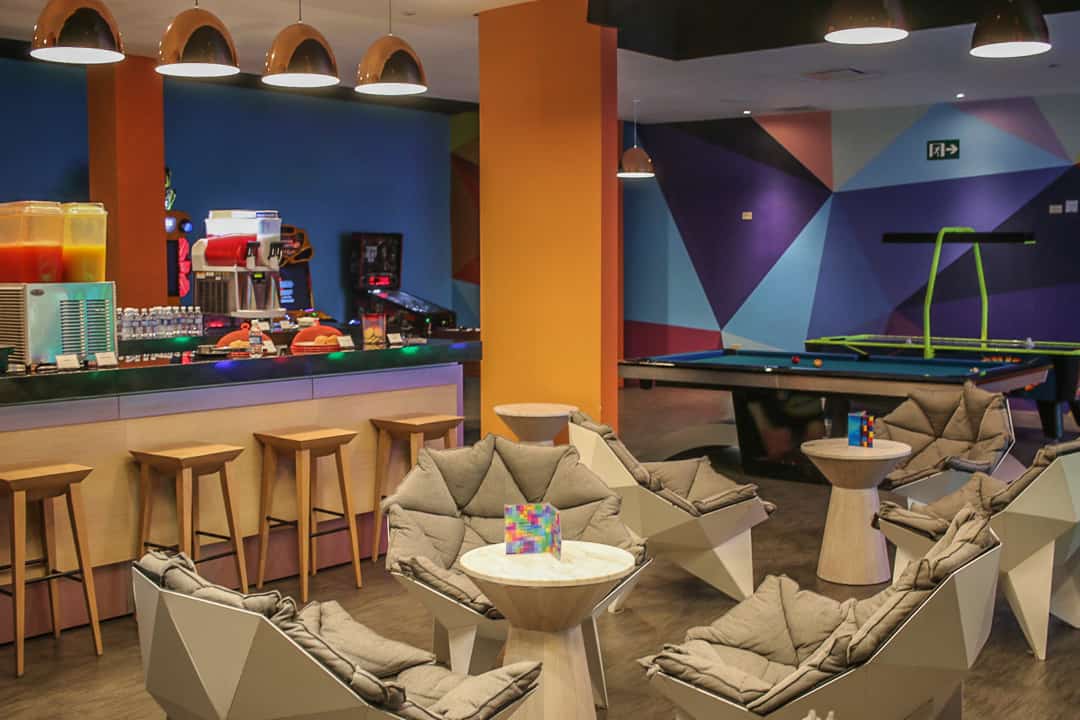 The pool areas are expansive. I couldn’t count the number of pools. The bright orange chairs really played off the deep blue sparkle of the pools well, and at night the colored lights invited late night swimming, too.