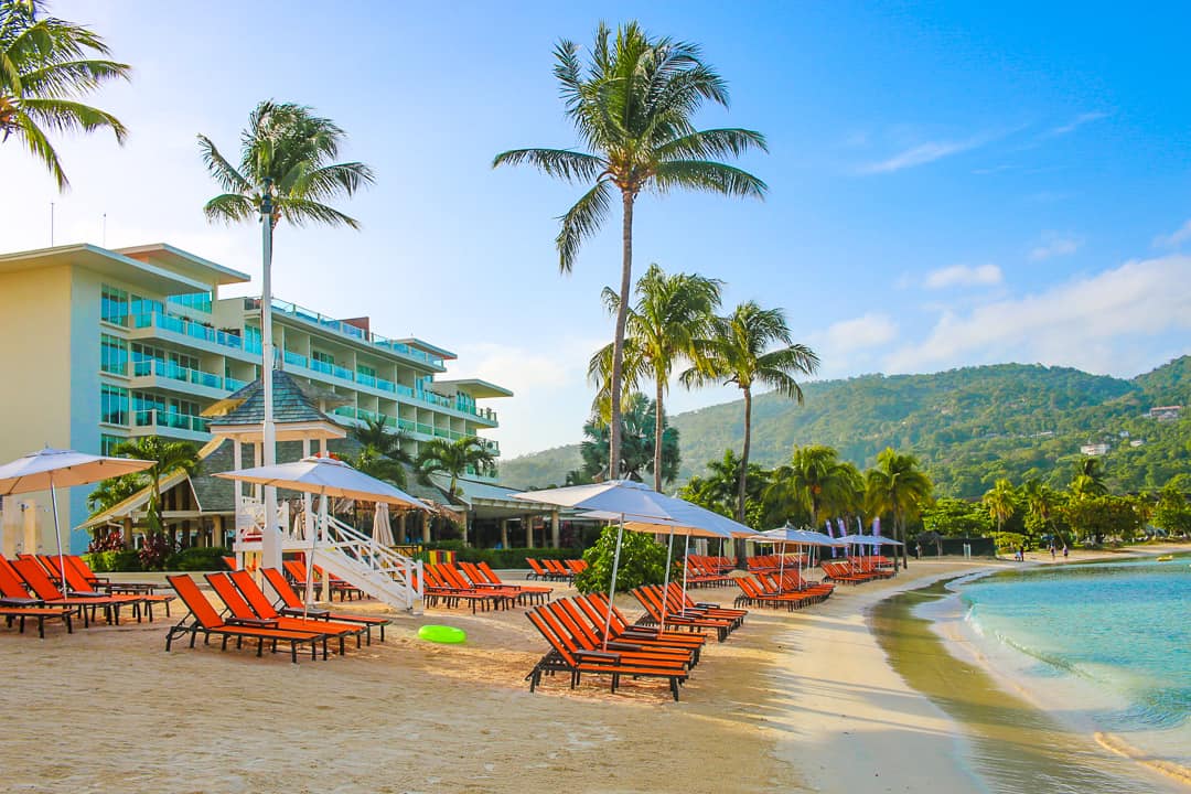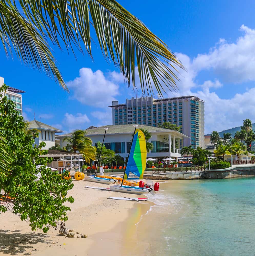 The beach at Moon Palace has soft sand and calm waters and works well for swimming and water activities. The beach is within the Ocho Rios harbor. When a cruise ship is docked, it’s scenic, and without a docked ship, it is somewhat bare.