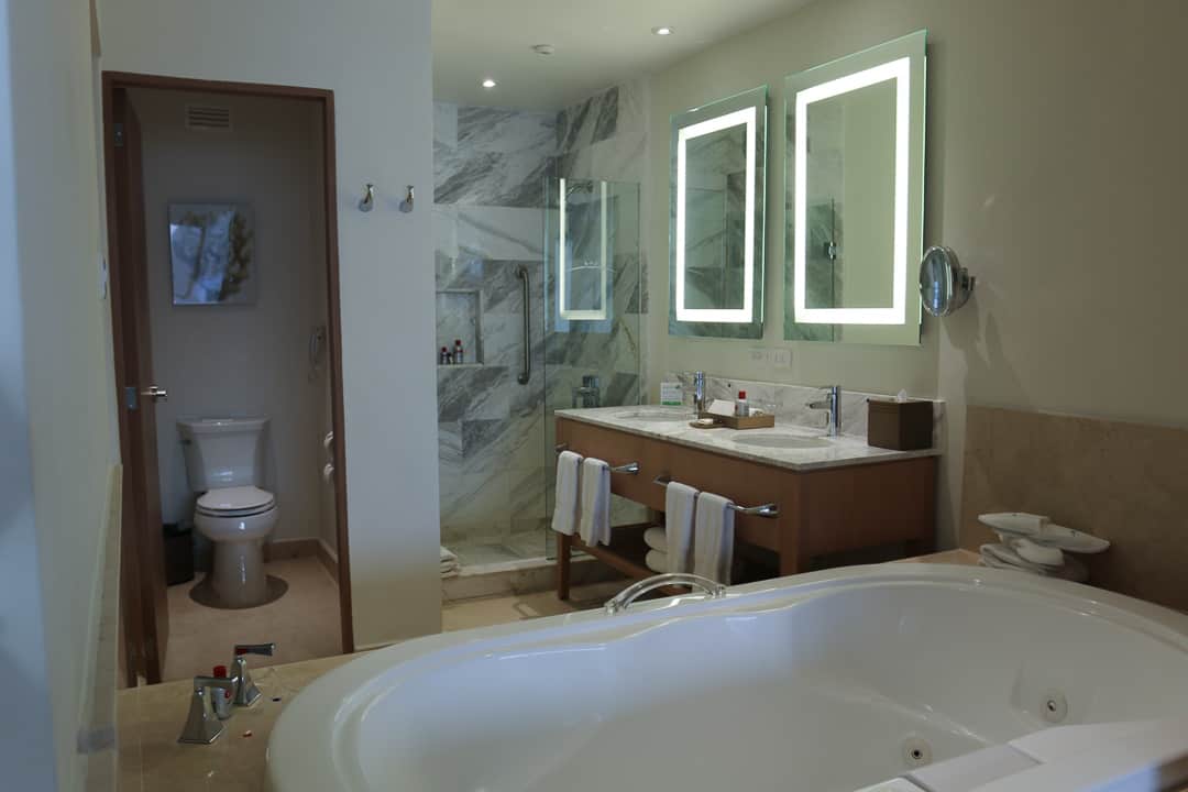 I loved opening the closet doors to see not only a really nice hair dryer, but a flat-iron, too, to combat Caribbean humidity. Moon Palace offering Chi style tools and products is an amenity I haven’t seen yet.