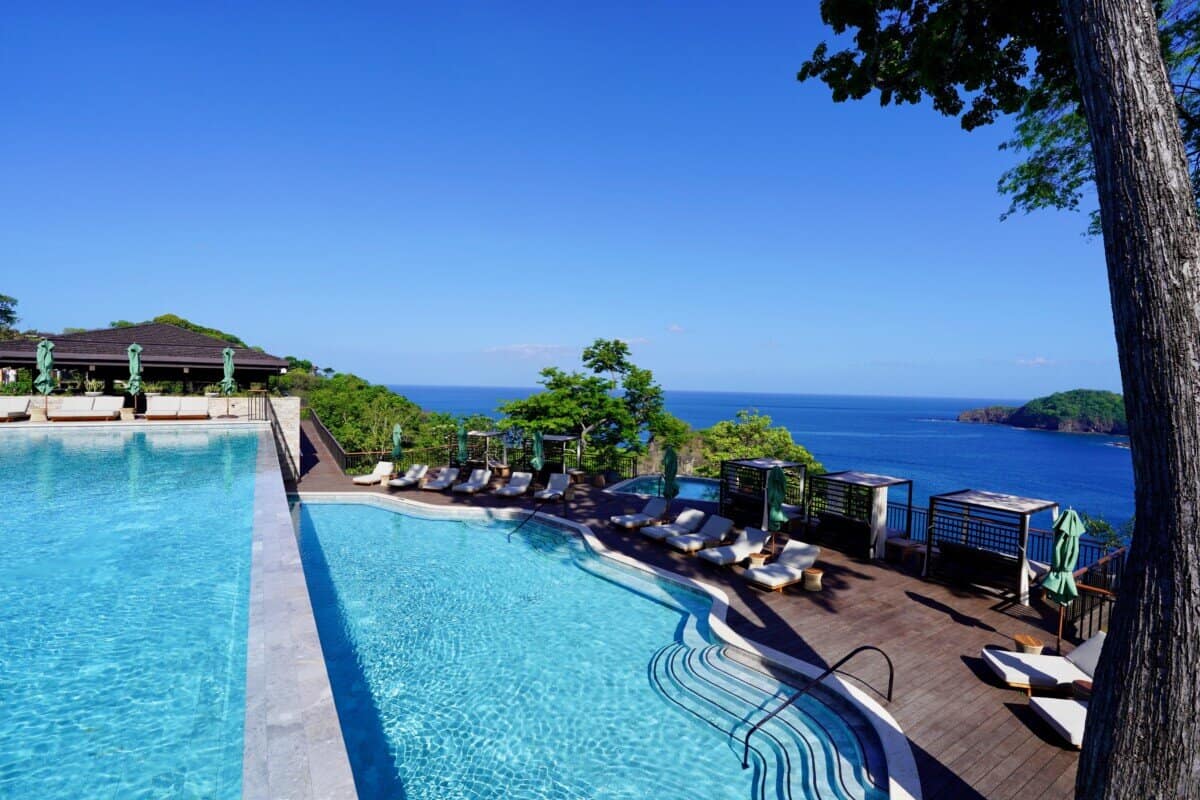 Nekajui’s Niri Beach Club is accessible via a glass funicular that descends the cliff face. The journey itself feels like an event. Once there, you’ll find a more intimate pool overlooking Playa Pochote, plus direct beach access. There’s no sprawling pool complex with multiple zones, and that’s by design. This isn’t a resort where you’ll find a lazy river or children’s splash pad.