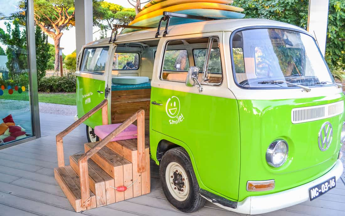 At the entrance of the café is Martinhal’s signature VW Camper van, which can be found in all the property’s restaurants and is much loved by the hotel’s younger guests, who can climb inside and pretend to drive.