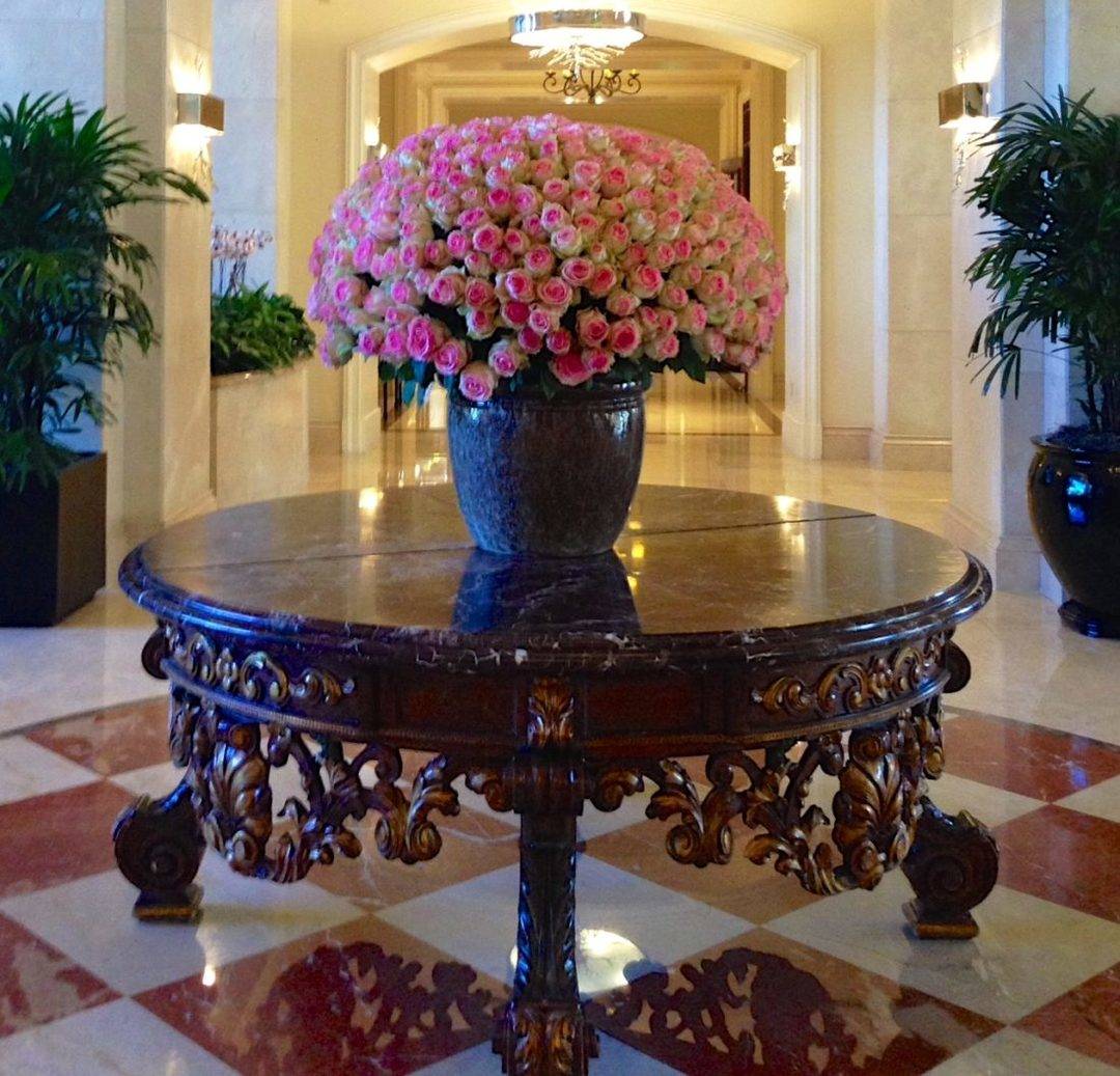 Driving through guarded gates past the tennis garden and clubhouse, our Honda mini van was surrounded by subtropical flora and fauna. Whenever I have stayed here, I marvel at how impeccable and well maintained the grounds are. Smiling and courteous valets welcomed us, and front desk agents presented us with glasses of champagne. The hotel has been recently renovated, and the look is the classic Ritz brand. Estate-quality chandeliers, pedestal tables topped with 200 roses, and sweeping ceilings made me feel like I was at a Ritz-Carlton, but the expansive windows bringing in azure skies and hints of the ocean reminded me that I was in Miami.