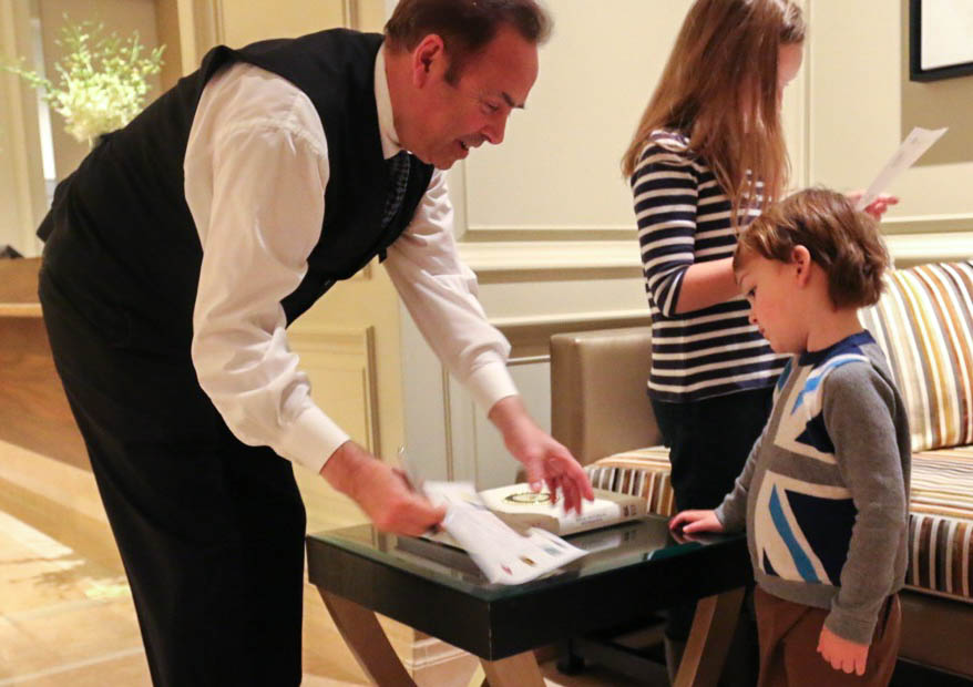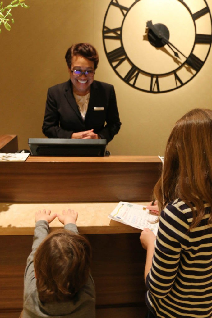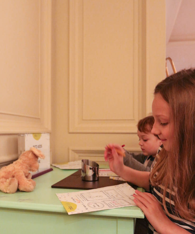 Every property has its own Ritz kids check-in. The Pentagon City property has a painted child-sized table next to registration where children filled out information on their likes and dislikes. The hotel took them (to customize the experience more or for the recycling bin?), and then front desk manager Dwayne offered my kids a hotel scavenger hunt. I am a big fan of these at hotels, as it is a nice flow to get acquainted with the property for adults and kids. My children were delighted when they discovered a prize was waiting for them upon completion. My daughter, armed with her pen, led the way as they met with the Bellman and counted the bell carts, find an ATM in business center, and request a metro map from the concierge.
