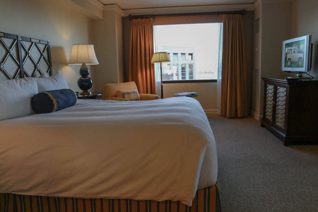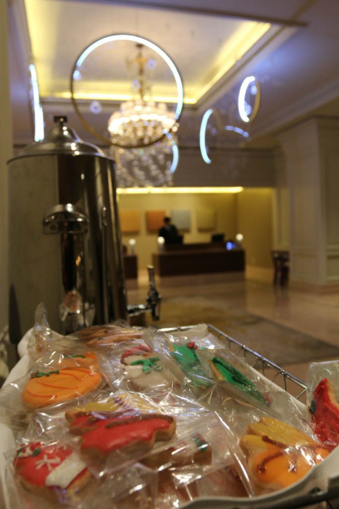The lobby probably once looked like a traditional southern Ritz-Carlton but has been given the sleeker modern makeover many of the properties are getting. We watched the hotel’s stylists arrive and adorn the lobby with beautiful holiday decorations before our eyes, with a giant glass bubble display that made me think of shrinking inside of flute of champagne, which is offered at check-in. And a cocoa bar offers not your standard brownie square or chocolate chip cookie but individually wrapped and beautifully decorated cookies. Honestly, this hotel’s specialty is clearly simple carbohydrates.