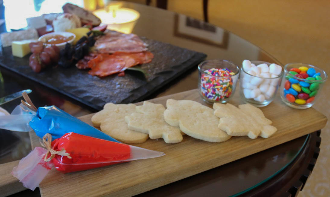Our welcome was thoughtfully arranged with fresh flowers, sparkling water, charcuterie and cheese, but the crowd pleaser was the decorate your own cookie activity waiting for my kids. My youngest was not so subtle with the red and blue frosting.