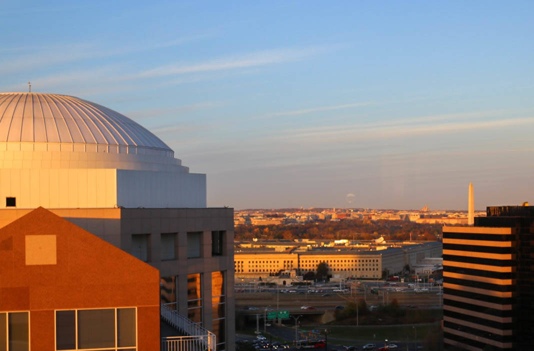 Our suite had beautiful views of the Pentagon, the Potomac River, and the monuments on the Mall. I’m sure the rooms will get a renovation in the future with a more updated look but we found our suite with traditional masculine golds and reproduction antique furniture to be incredibly comfortable and very spacious for a family, with one and a half bathrooms and exceptional closet space.
