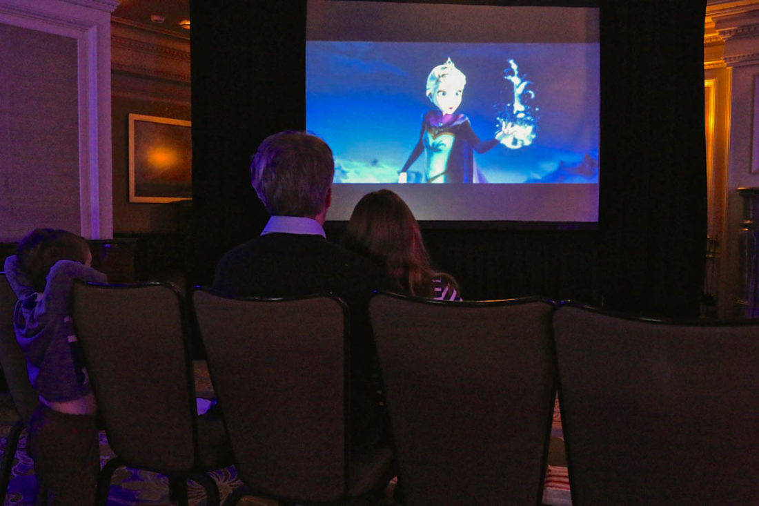 Charles, the food and beverage assistant manager, prepared popcorn and delivered fresh bags to all of the guests seated in the room. It was getting late we waited until my four-year-old could sing “Let it Go” along with the film, and then we retreated to the room to change into swimsuits.