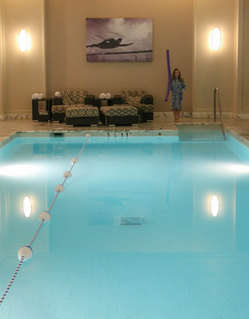 The swimming pool is a long skinny rectangle adjacent to the fitness center, and although my daughter said the water was warm, my husband definitely didn’t.