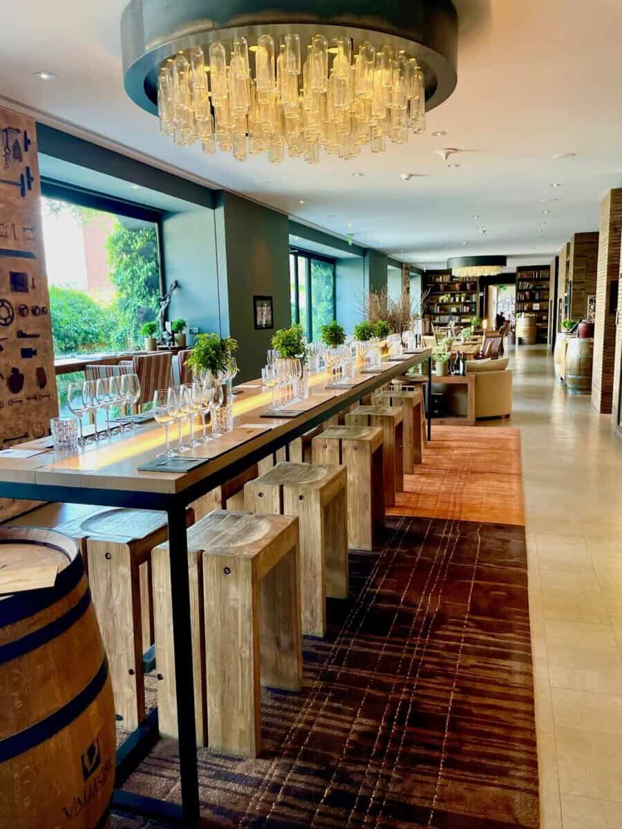 The hotel is full of beautiful and unique spaces including the alchemy bar where you can make a personalized mixture of herbs, florals and spices to create balms or exfoliating scrubs, a “wine library” allowing your to sample fine Portuguese varietals using the ease of your room key card, stone community tables set for wine tasting, nooks to read in oversized leather chairs, an afternoon tea bar, an organic garden that provide fresh herbs and vegetables to the restaurant and winding walking trails along the hill and river to name a few.