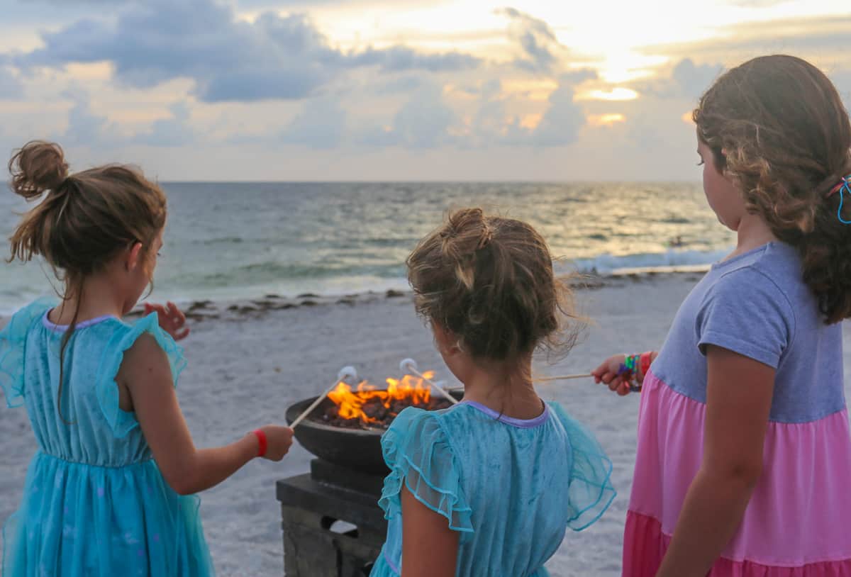 The s’mores kits were so generous that we had ample left over and invited other families to join us. A group of friends with similarly-aged young girls wearing Disney princess nightgowns joined my son at making a marshmallow mess.