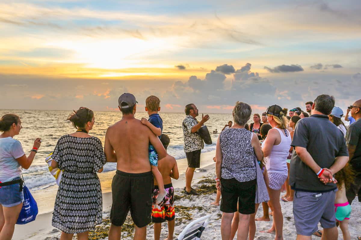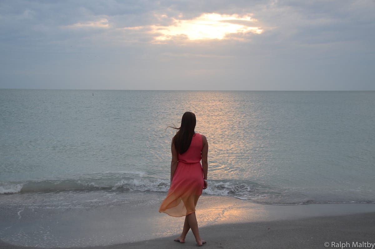 As the pink sun gets closer and closer to the silver horizon line, the musician leads the crowds down to the beach. Everyone is instructed to find a sea shell (this requires no effort on Captiva beaches) and, after making a wish, we are to throw it into the ocean.