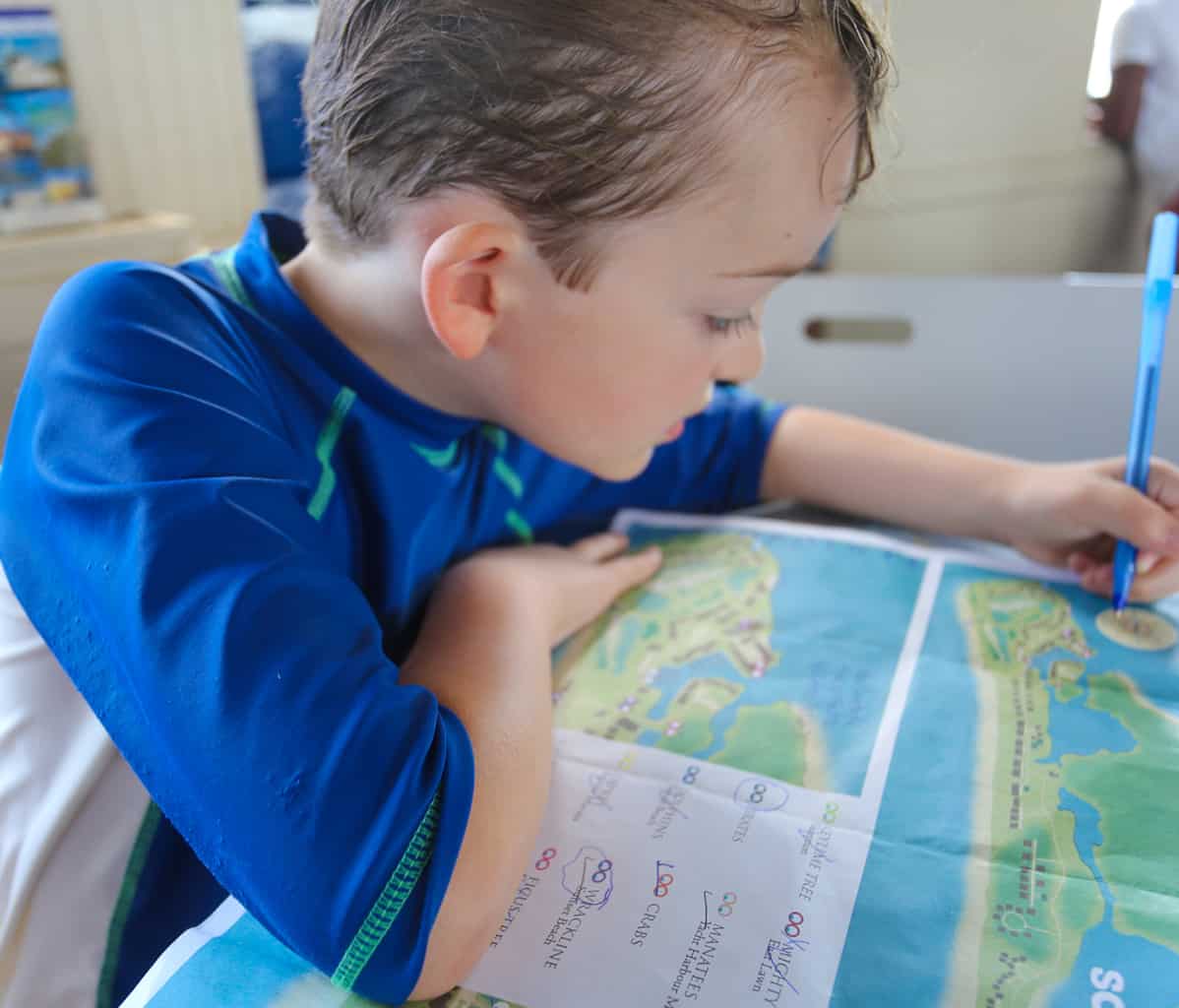 Guests get maps where loose clues show where to collect a variety of colored bands throughout the resort, every inch of it. My son and I took two days to complete the quest in our golf cart, and we loved every second of it.