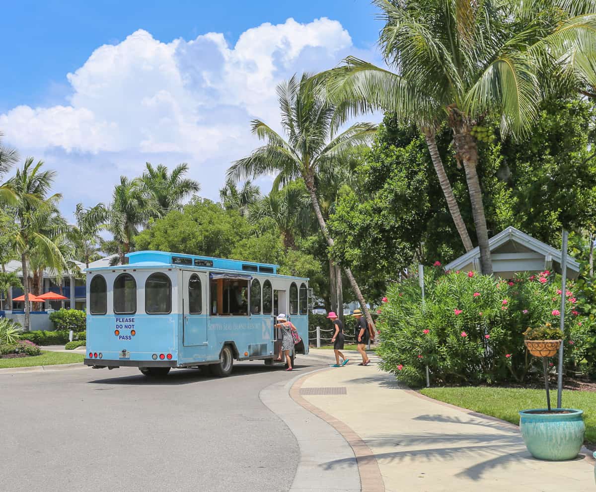 The resort has two main sections where its amenities are located, and the road that connects them is too far to walk. The resort offers a shuttle trolley service, but renting a golf cart is the only way to go.
