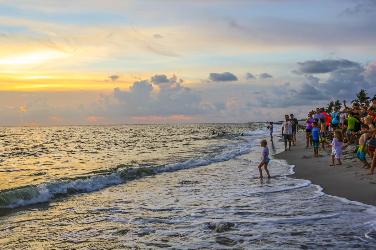 The heart of a Captiva vacation is the daily sunset over the Gulf of Mexico. The resort has created a nightly beach ritual. A guitarist strums and sings a vacation playlist. Children swim, build sandcastles, or lounge in the nearby hammocks. Families rejoin after a day of activities.