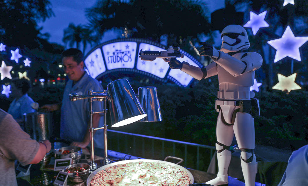 Included in the cost is an open dessert and limited drinks buffet. The sweets range from Mickey bars, Mickey ice cream sandwiches, and the other standard Disney park treats, to more elaborate Star Wars-themed desserts.