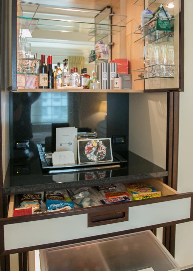 There’s a serious amount of candy hidden in their very custom mini bar cabinetry, making any binge experience feel less shameful and more of a home design experience.