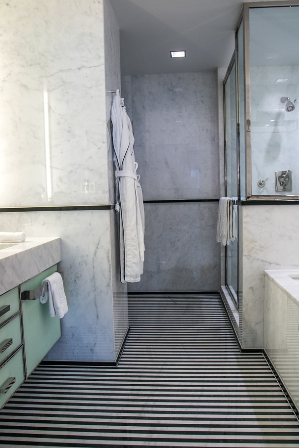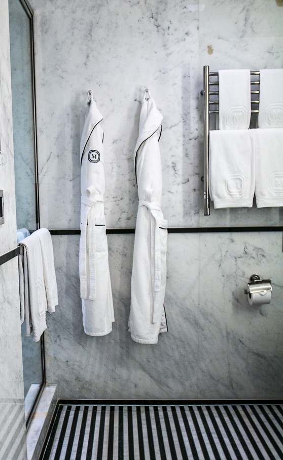 The bathrooms at The Mark are stunning, and they were my favorite feature of the hotel rooms. Ample Carrera marble, towel warming bars, and their adorable signature sketched amenities by the Mark’s signature cartoonist.